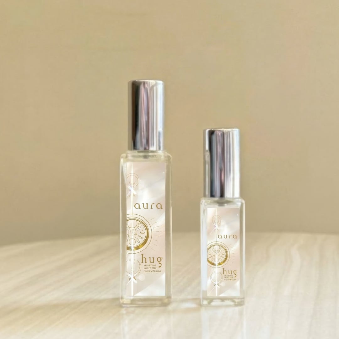 aura light の樟が「御神木として凛と立つ」なら、aura hug の樟は「世界樹として優しく抱く」。同じ樟でも、共に在る香りによって、まったく違う表情を見せる。
